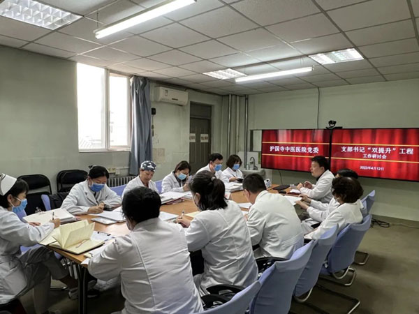 2023年4月12日下午,护国寺中医医院党委结合三级医院复审工作,组织各党支部开展自查互查,以支部正规化建设为基调,对支部“三会一课”、组织生活会、党日活动、党员发展、党费收缴等日常工作进行检查,从而使支部工作水平及医院全面发展得到进一步提升。