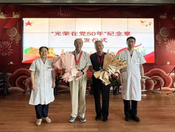 两名符合条件的老同志:范海源、刘钢,在庆七一大会上获颁纪念章,深切感受到以习近平同志为核心的党中央的关怀和温暖。我们要向老党员看齐,继承好优良的光荣传统,做到不忘来时路、薪火永相传。