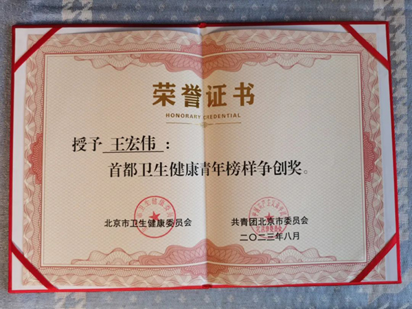 奋斗青春 勇担使命——我院主治医师王宏伟荣获 “首都卫生健康青年榜样争创奖”