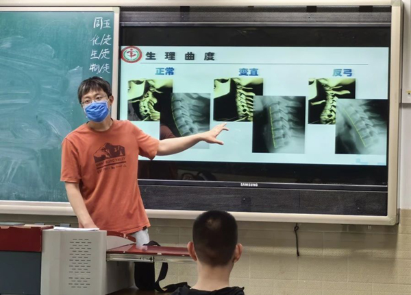 课上,周乔老师通过人体骨架结构、形成颈椎病的机理以及日常如何预防、缓解颈椎病这几个方面给同学们进行了生动授课,并带动同学们做了针对颈椎部位的功能锻炼操。希望孩子们在长期伏案学习之余,加强颈部运动,按压相应学位,缓解颈椎压力,从而避免“积劳成疾”。大家都知道,“病来如山倒,祛病如抽丝”,这便是“未病先防”的意义所在。