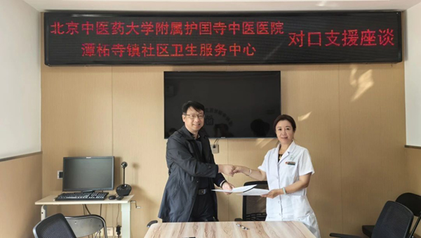 9月24日上午,由我院党委书记周京武、医疗主管副院长么丽春带队,医院医务科、党办负责人及针灸科、骨伤科、中医内科骨干医护人员一行八人,来到门头沟区潭柘寺社区卫生服务中心,为当地居民提供义诊咨询服务,普及健康养生知识。团队医师耐心地询问病史、细致地进行评估,讲解相关疾病的发病机制及治疗方法,并结合百姓身体状况和健康需求,给予相关专业建议,提高百姓“未病先防”、“已病早治”的意识,指导群众科学养生,当日义诊受益群众50人次。多年来,护国寺中医医院承担对潭柘寺社区卫生服务中心的城乡对口支援任务,义诊当日,护国寺中医医院周京武书记、么丽春副院长与受援社区中心的李静院长、耿常元副院长进行了深入的交流座谈,详细沟通帮扶具体实施方案,并续签对口支援协议,持续做好帮扶和巡回医疗任务。