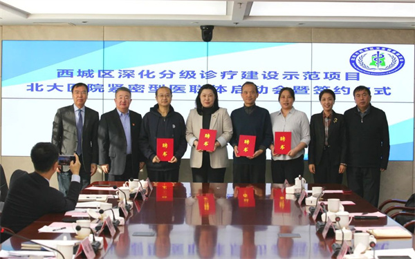 为加大西城区分级诊疗制度建设和体系建设探索,为辖区居民提供连续性分级诊疗服务,11月26日,西城区成功举办深化分级诊疗建设示范项目——北大医院紧密型医联体建设启动会暨签约仪式。会上,北大医院与4家区属医院签署了紧密型医联体合作协议。