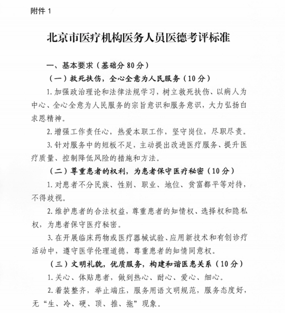 1. 北京市医务人员医德考评标准