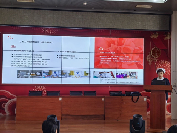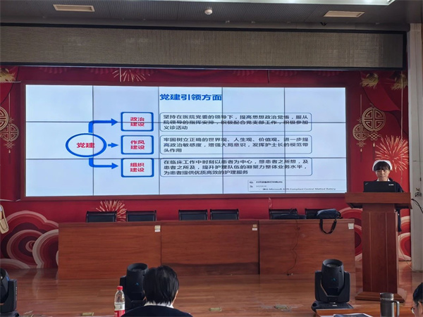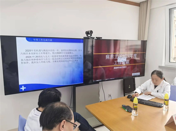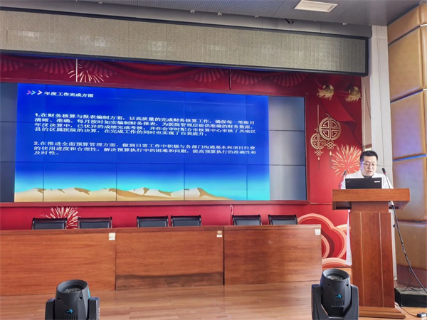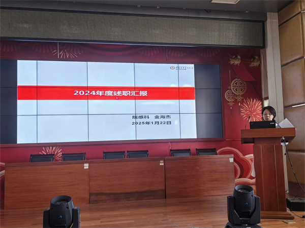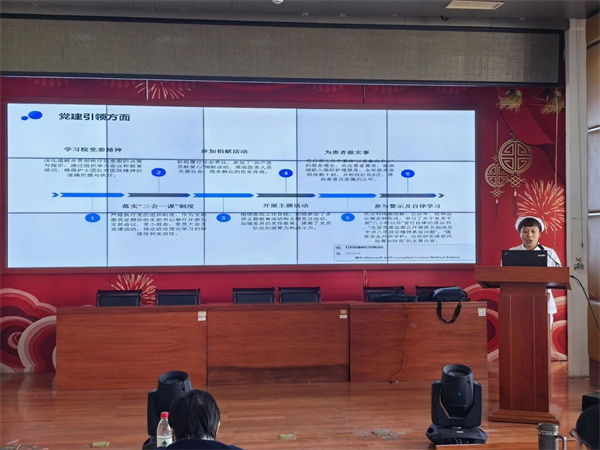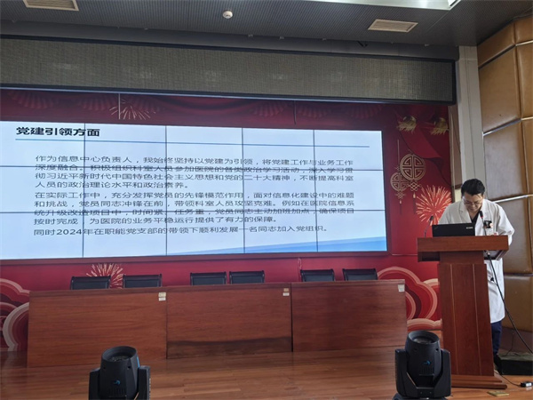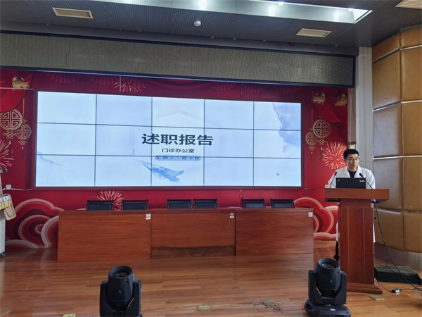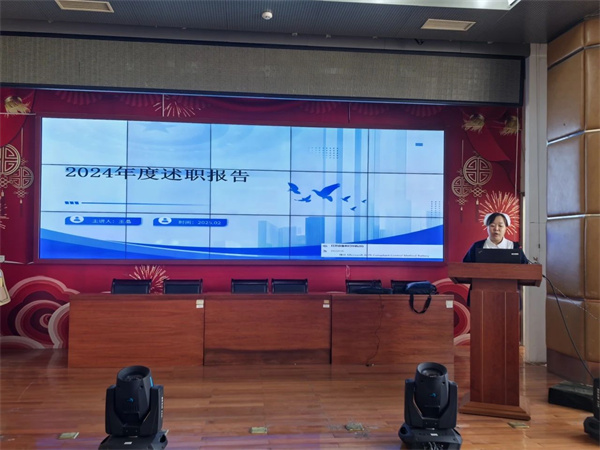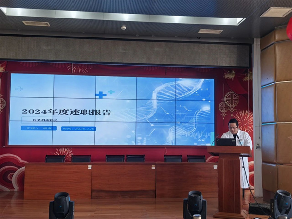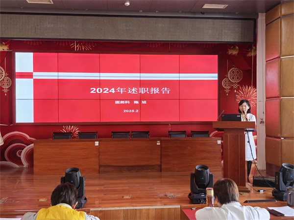 述职大会上,医院各中层干部就2024年度工作情况,分别在党建引领、年度工作完成、科室管理建设、一岗双责廉洁自律、存在不足及改进措施、2025年工作计划六个方面进行了全面的述职分析。