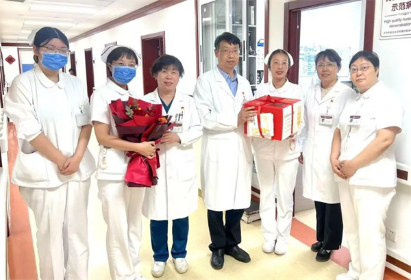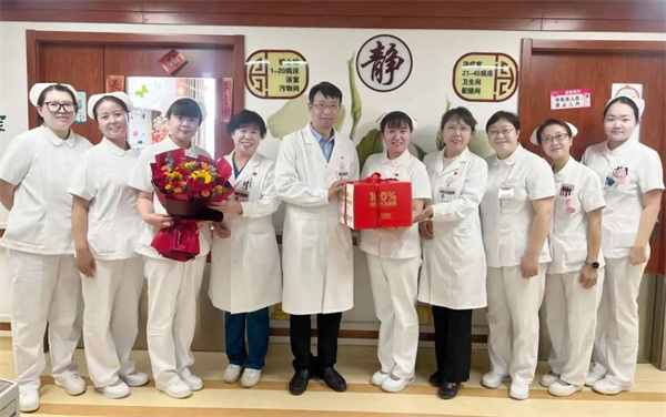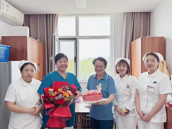 2025年5月12日上午,党委书记周京武、副院长刘美华、副院长么丽春及护理部主任李春红深入临床科室亲切慰问广大护理同仁,为他们送上鲜花和蛋糕并致以最真挚的节日问候和祝福,表达了医院对他们的真切关爱。