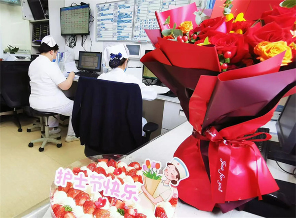 5月12日中午,我院食堂为全院护士精心准备了蛋糕和水果,供护士们和其他职工免费享用,共同庆祝这欢乐的时光。