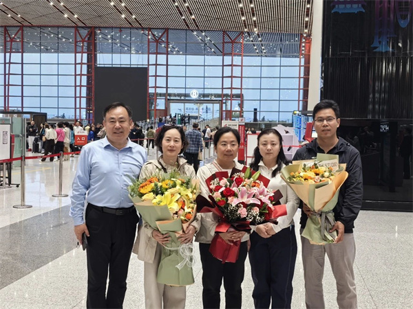 2025年5月25日晚,北京中医药大学附属护国寺中医医院内科病房主治医师王博元作为第十一批第二期援疆医疗队成员,圆满的完成了援疆工作,顺利返京。医院党委书记周京武、党办主任曹旭添赴首都机场接机。
