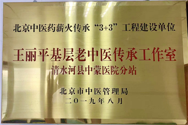 2019年8月,在北京市中医药管理局支持下,“王丽平基层老中医传承工作室清水河中蒙医院分站”于呼和浩特市清水河县挂牌成立。王丽平团队多次赴清水河县开展授课、出诊及带教帮扶,成果显著,于2023年、2024年连续荣获北京市中医药管理局、呼和浩特市人民政府及卫健委授予的先进集体与优秀个人称号。