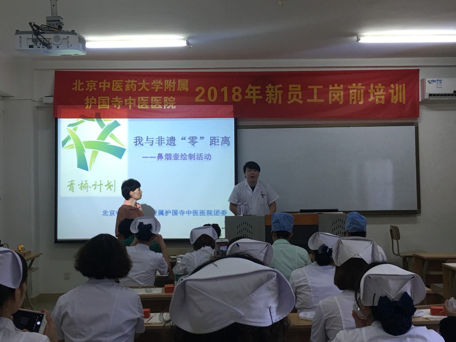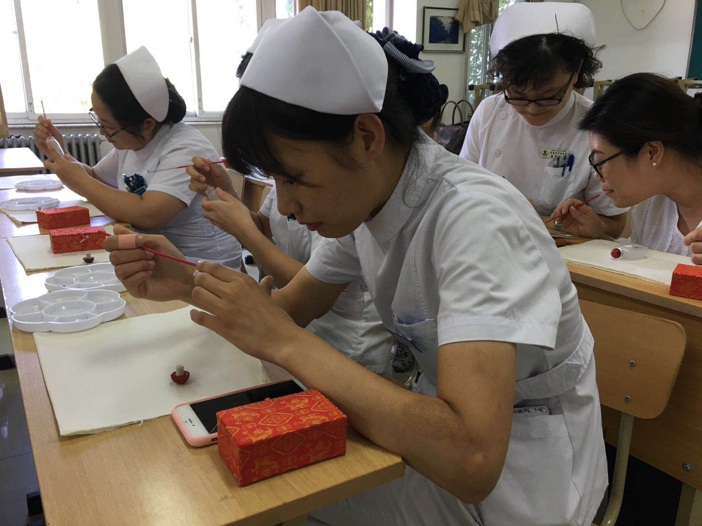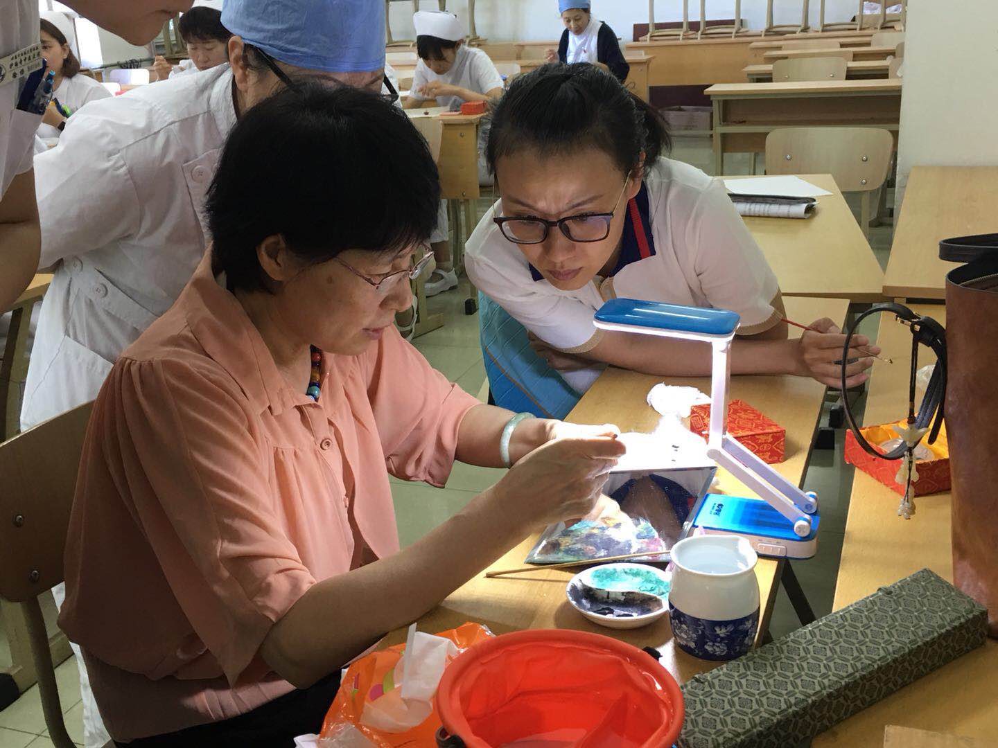 2018年8月29日下午,北京中医药大学附属护国寺中医医院团委开展青桥项目:我与“非遗”零距离——鼻烟壶绘制活动。在西城团区委“青桥计划”项目平台下,我们邀请到了京派内画鼻烟壶第四代传承人祁咏香老师为我院职工、青年教授鼻烟壶绘制。