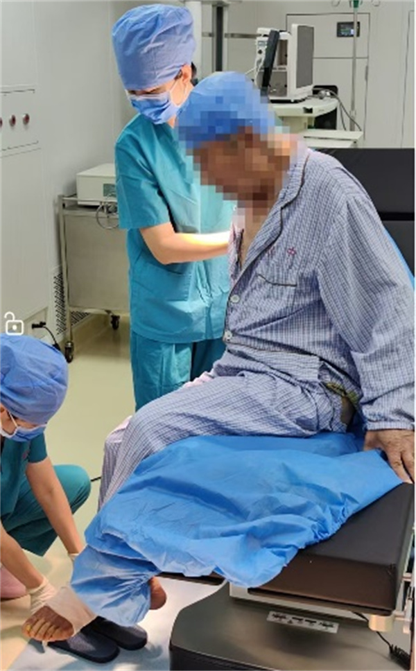 11月13日我院外科在手术室同仁默契配合下为毛老先生实施局麻下的大隐静脉射频腔内闭合手术,手术耗时仅45分钟,全程患者无痛苦感受,手术结束后,毛老先生自行下床,步行出手术室。