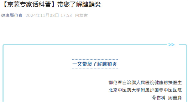 周鑫淼医师积极相应号召积极参与骨科方面的健康宣教工作,先后发表《带您了解腱鞘炎》、《中医骨伤解病痛 内服外治显奇效》宣传文章,对中医骨伤内治法及腱鞘炎的治疗进行宣教工作,文章被鄂伦春自治旗旗人民医院及鄂伦春卫生健康委等多家机构转载,引导当地患者规范化就医诊治疾病。
