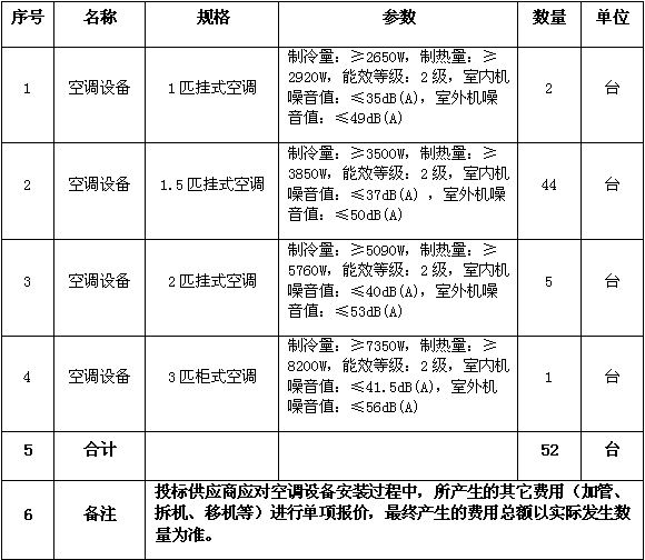 1、项目名称:空调采购