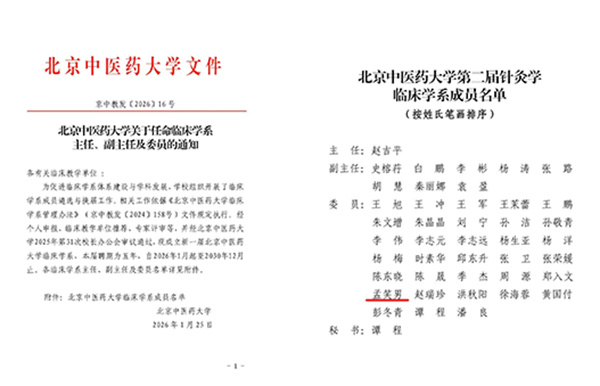 为进一步促进临床学系体系建设与学科发展,北京中医药大学于近日组织开展了临床学系成员遴选与换届工作,我院针灸科主任医师孟笑男入选针灸学临床学系委员。