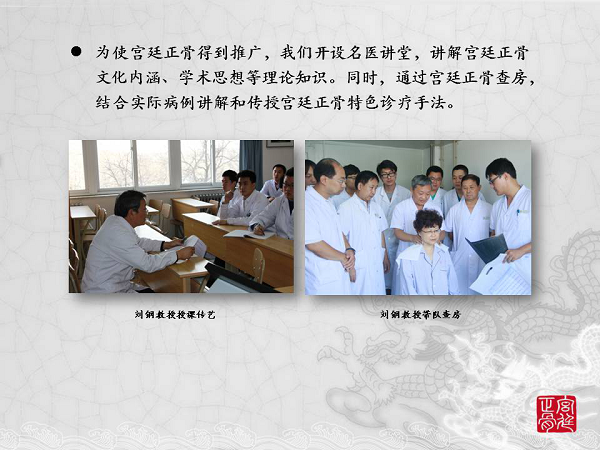 科室介绍:北京中医药大学附属护国寺中医医院骨科有60多年悠久的历史,著名骨科国医大师夏锡伍先生、吴定寰先生是我院骨科的奠基人,骨科是“十一五”、“十二五”国家级重点专科、北京市西城区临床重点专科。“十三五”北京市区域重点专科。科室特色“宫廷正骨”技术2007年列入北京市级非物质文化遗产保护名录;2008年列入国家级非物质文化遗产保护名录。现设有“宫廷正骨研究室”、“国家级重点专科研究室”、“名老中医基层工作室站”支撑临床工作,在医疗、科研上不断创新、突破。特别注重“宫廷正骨”手法和“院内制剂”的应用,设有腰椎间盘突出症、颈椎病、膝骨关节炎、创伤、骨质疏松等7个专病专台。为学术带头人为北京市名老中医刘刚主任。