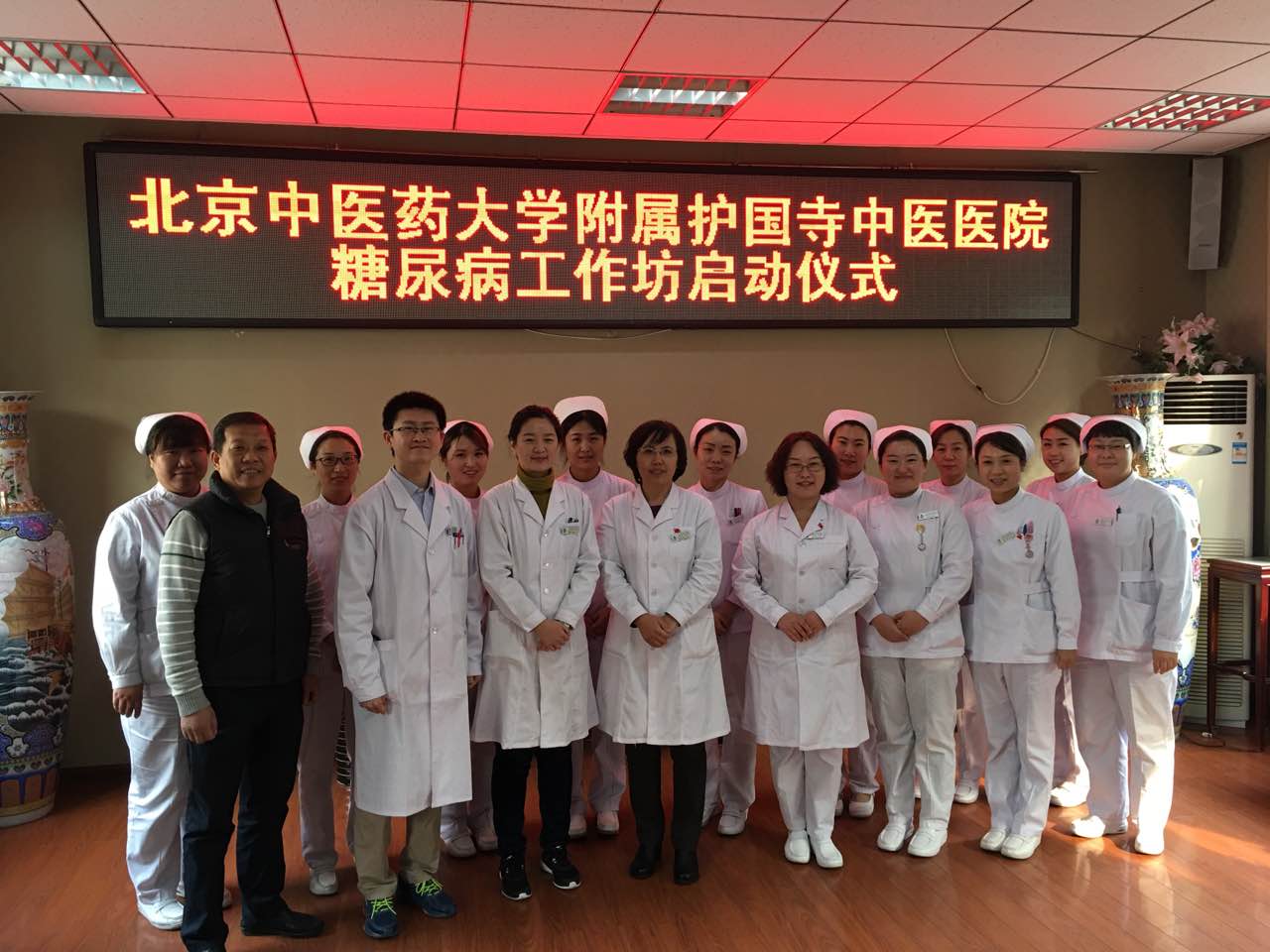 2016年10月20日,北京中医药大学附属护国寺中医医院“糖尿病工作坊”在二楼会议室举行启动仪式。参加此次启动仪式的有主管院长刘美华、护理部主任李书为、医务科科长张发明、膳食科科长李如涛、内科大夫许晶晶。