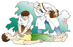 那天,有序的门诊大厅突然嘈杂起来,原来是旁边餐馆的师傅不慎摔倒,导致昏迷。内科医生与护士急忙给她安顿到合适的位置上进行抢救,在较短时间外科、心电图、化验室等相关科室的医生也迅速赶到。初步诊断是外伤引起的意识障碍,手掌外伤出血。这时外科医生帮患者