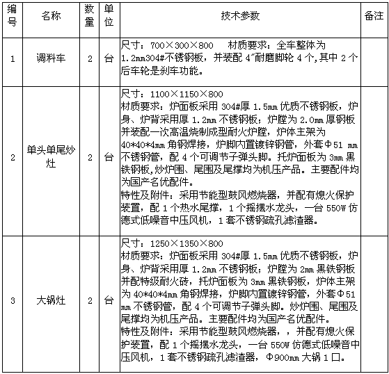 由于食堂后厨设备老化严重,已经不能满足正常的出菜要求,为保证菜品的质量,给患者和职工提供优质的餐饮服务,医院对本部食堂部分厨房设备进行淘汰更新,所提供的设备应符合食药监局对制作食品安全的管理要求。具体设备清单如下: