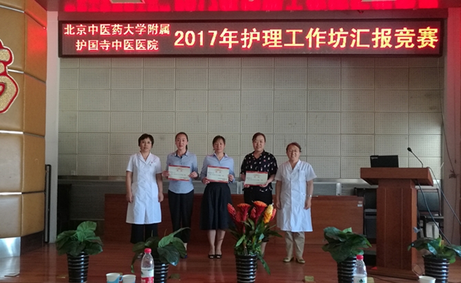 2016年8月29日下午,北京中医药大学附属护国寺中医医院在五楼礼堂召开2017年护理工作坊汇报竞赛,出席此次大会的有院长王慧英、主管护理院长刘美华,护理部主任李书为、各职能科室领导及各病房科主任。